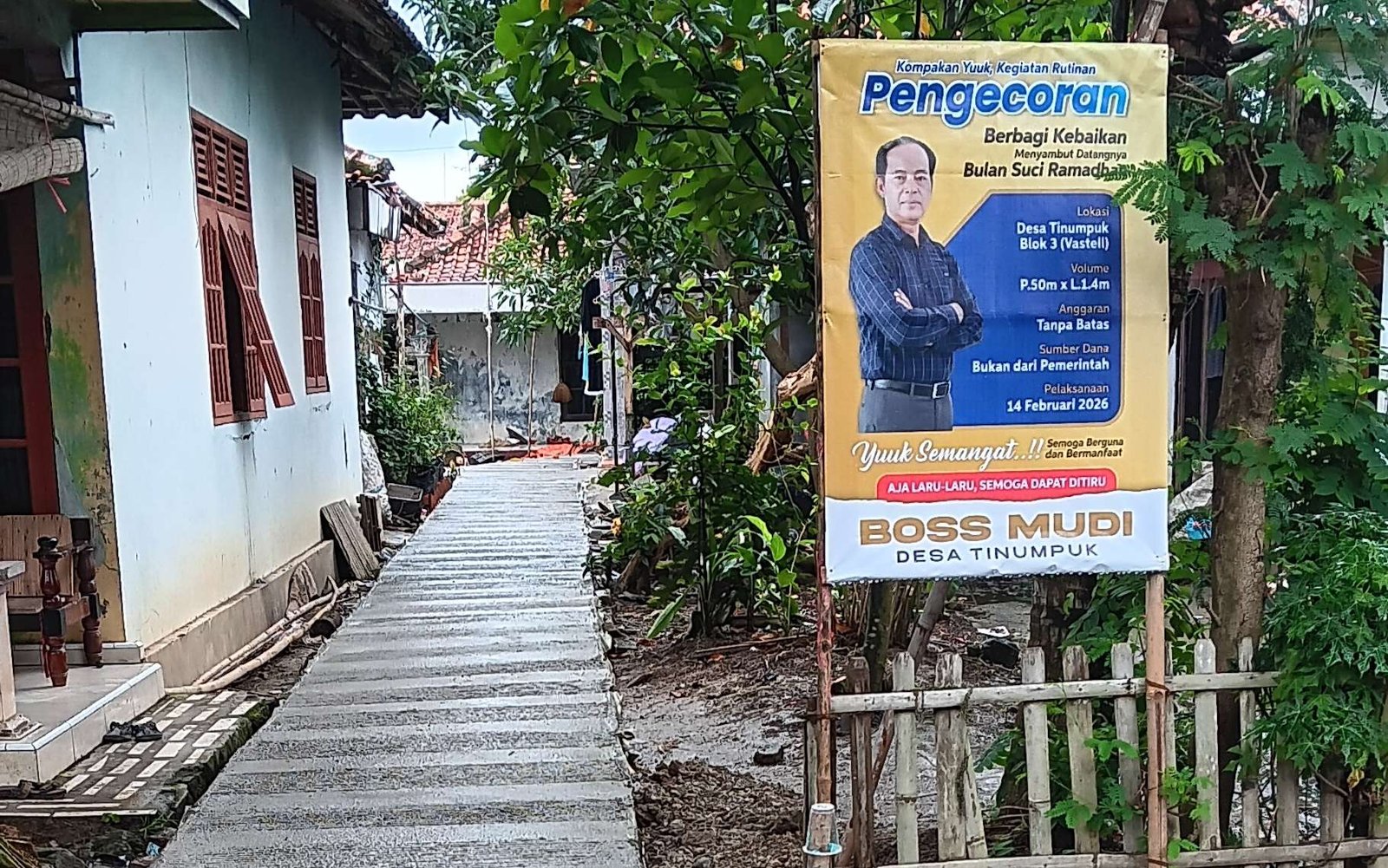 Boss Mudi Sukses Laksanakan Pengecoran Jalan, Berbagi Kebaikan Sambut Bulan Suci Ramadhan