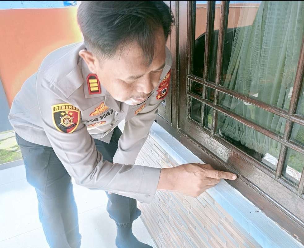 Selain itu, jendela depan di samping pintu utama juga ditemukan dalam keadaan terbuka dan diduga menjadi jalur pelaku melarikan diri setelah melakukan aksinya.