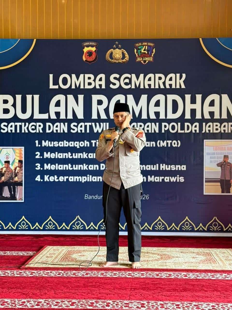BANDUNG, SMI.id – Polda Jabar menggelar kegiatan “Lomba Semarak Bulan Ramadhan” yang diisi dengan perlombaan adzan antar satuan kerja (satker) dan satuan wilayah (satwil) jajaran Polda Jabar, Rabu (25/2/2026) Kegiatan tersebut dilaksanakan sebagai bagian dari upaya memperkuat nilai-nilai spiritual dan kebersamaan di lingkungan kepolisian selama bulan suci Ramadhan.